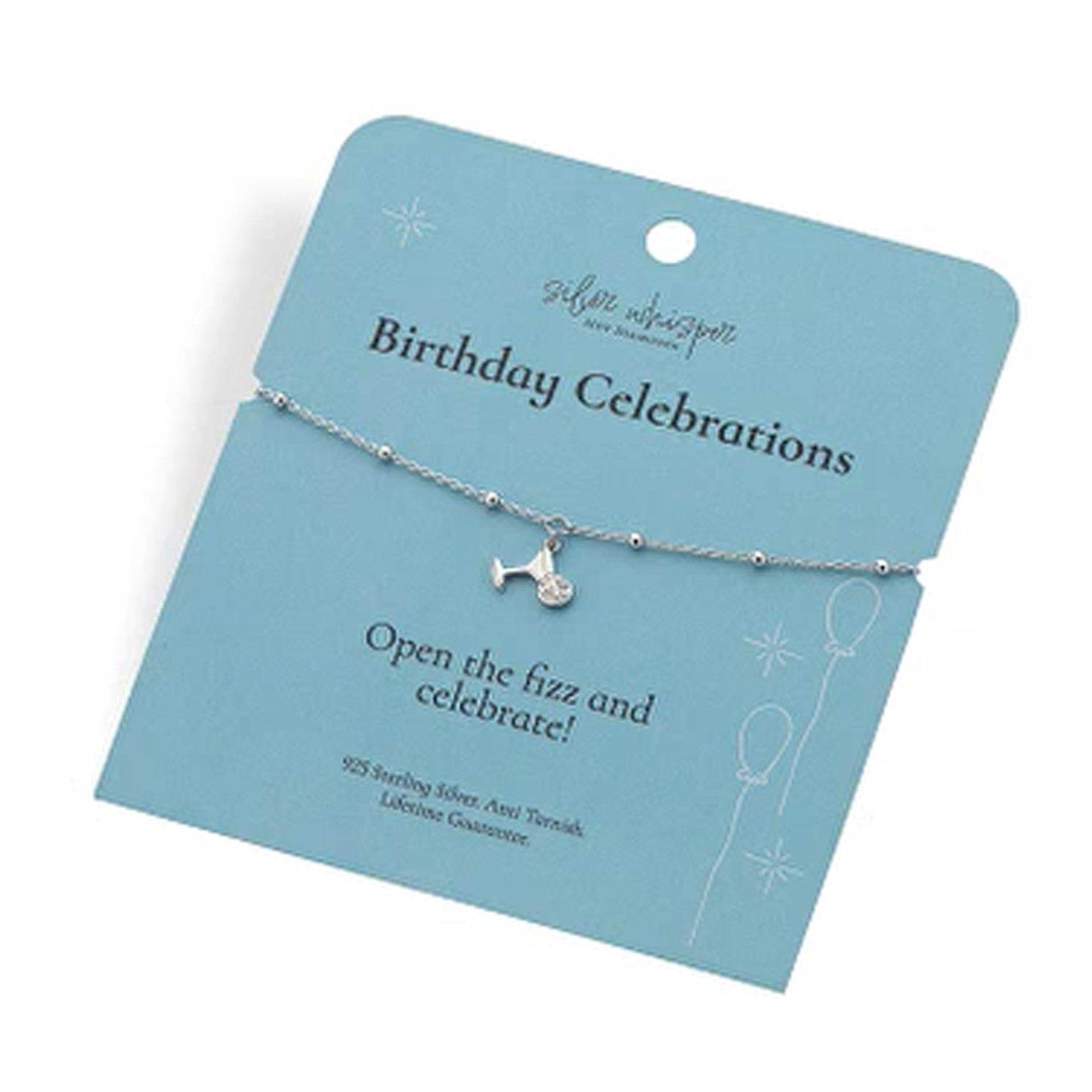 Hot Diamonds Silver Whisper 'Birthday Celebrations' 925 Sterling Silver Bracelet with CZ set Cocktail Glass charm SWB004. This bracelet measures 16cm with a 4cm extender. This bracelet does not contain diamonds. Rhodium plated for anti-tarnish and a lifetime guarantee. Presented on a coloured card and supplied with a luxury gift bag.