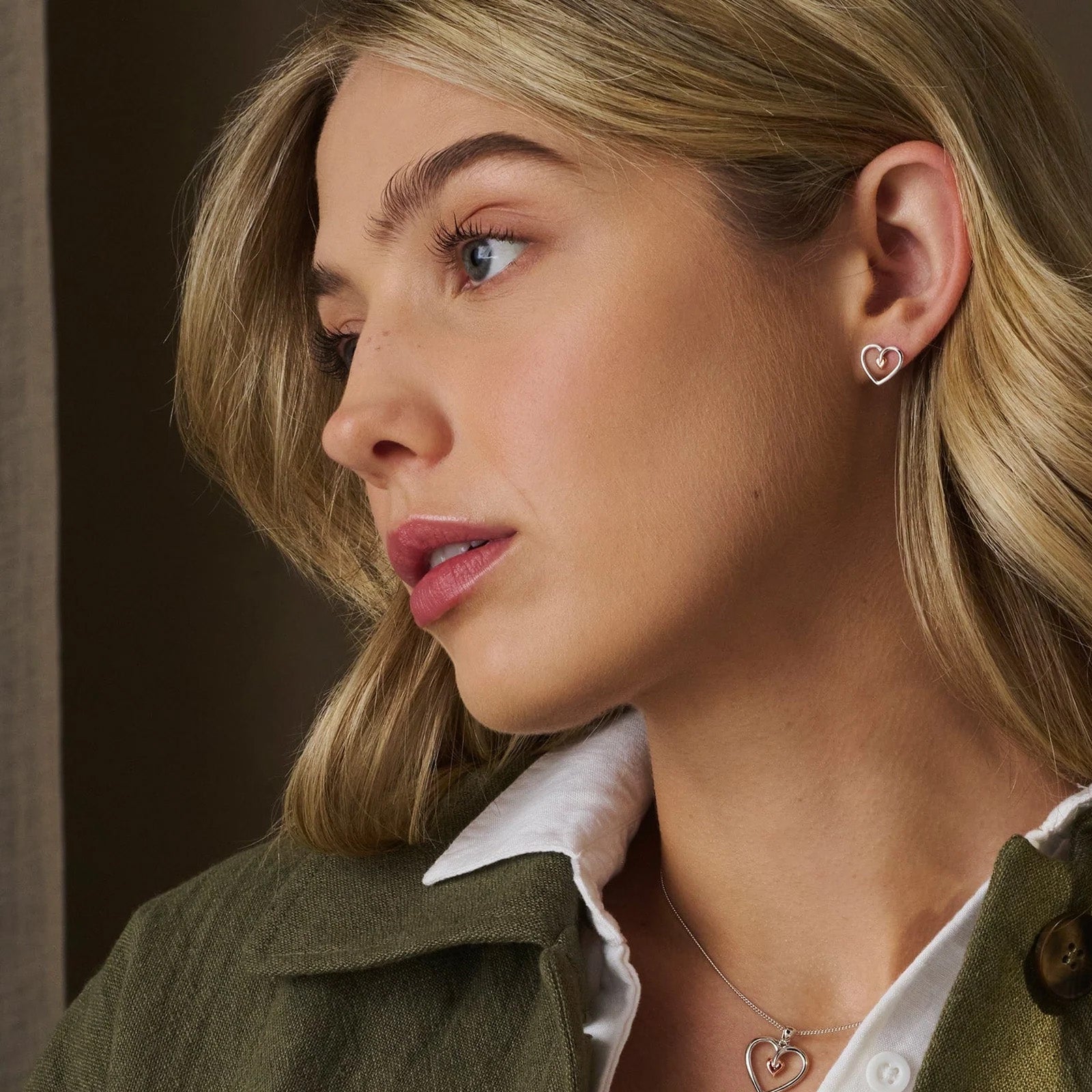 Clogau Tree Of Life Heart Stud Earrings 3STLHE7. The Tree of Life is popular in folklore as a representation of creation and growth, two ideas which go hand-in-hand with true love. Clogau's sterling silver Tree of Life Heart Stud Earrings create beauty from simplicity, forming the classic heart shape with sweeping vines tipped with warm 9ct rose gold leaf motifs. Width: 1.0cm. Height: 0.95cm. Weight: 1.6g
