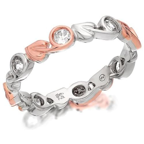 Clogau Tree Of Life Stacking Ring 3STOLEDR. The Tree of Life expresses so many inspiring ideas, from the wonder of creation and growth to the deeply spiritual connections between all living things and their vital relationship with the earth. Clogau Tree of Life Silver Stacking Ring elegantly presents the motifs signature curling leaves in sterling silver, adorned with white topaz berries and alternating accents of warm 9ct rose gold.