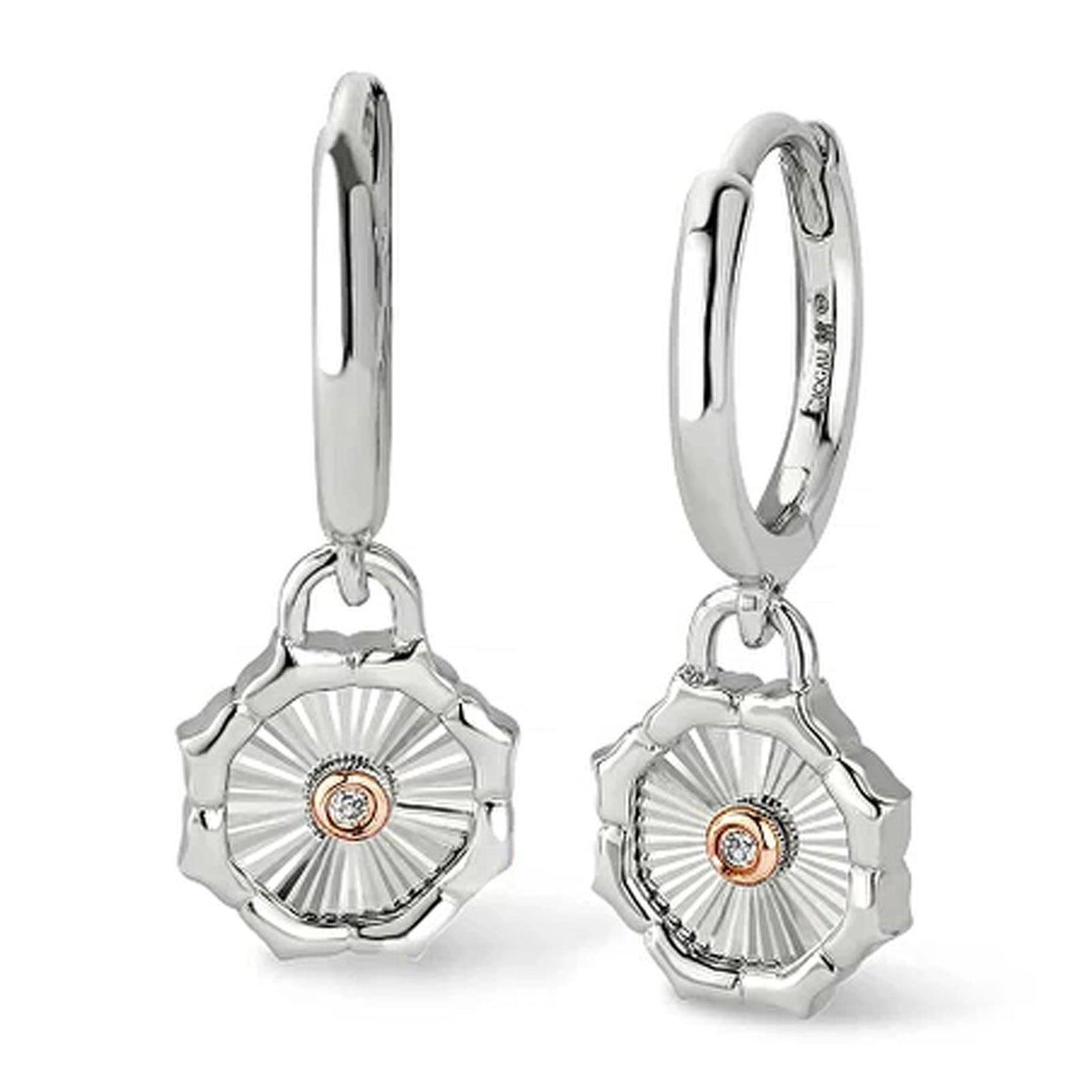 Clogau Nos Da Hoop Drop Earrings 3SNDA0720. At days end, they are the stars which sparkle in the dark blanket of the heavens as you close your eyes to dream of them again. Clogaus timeless Nos Da Silver Drop Earrings (pron. nors dah, good night) represents nights you wish would never end and a light that guides you. They feature a sterling silver setting with 9ct rose gold detailing surrounding a central white topaz gemstone. Width: 0.9cm. Height: 1.2cm.