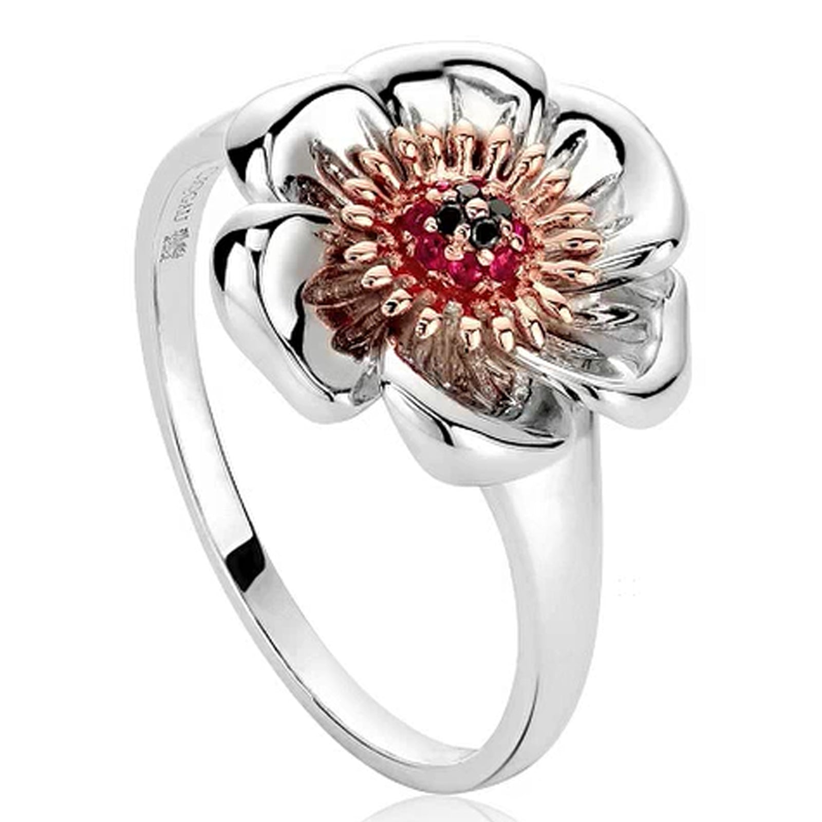 Clogau Silver & Rose Gold Ruby & Diamond Poppy Ring