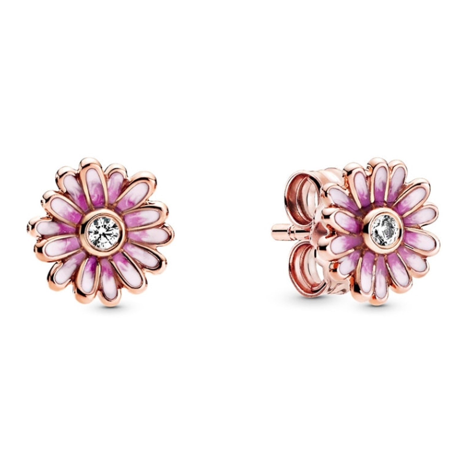 Daisy Pandora Rose stud earrings with clear cubic zirconia and shaded pink enamel