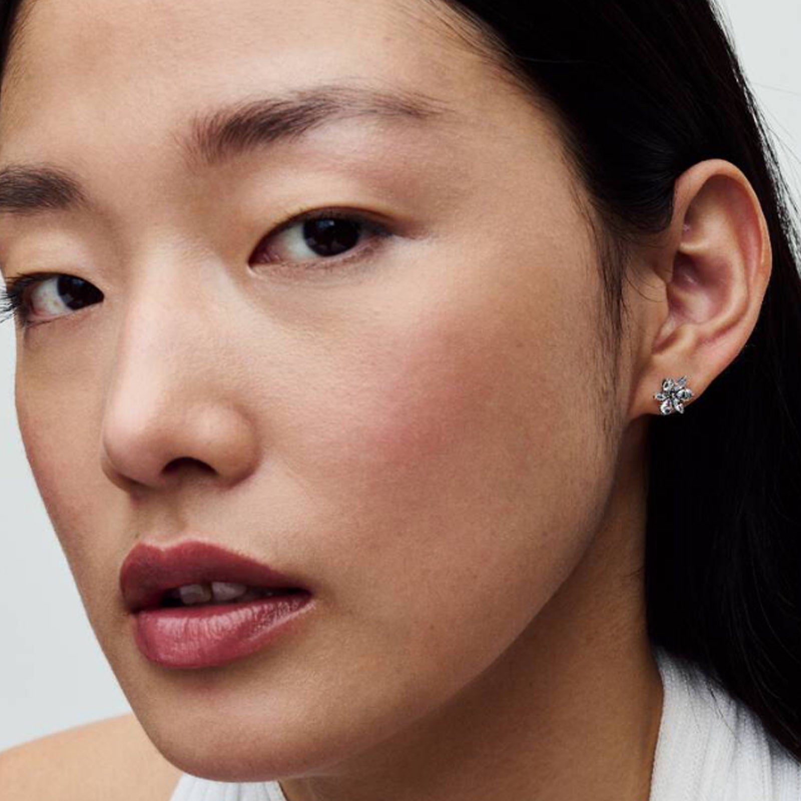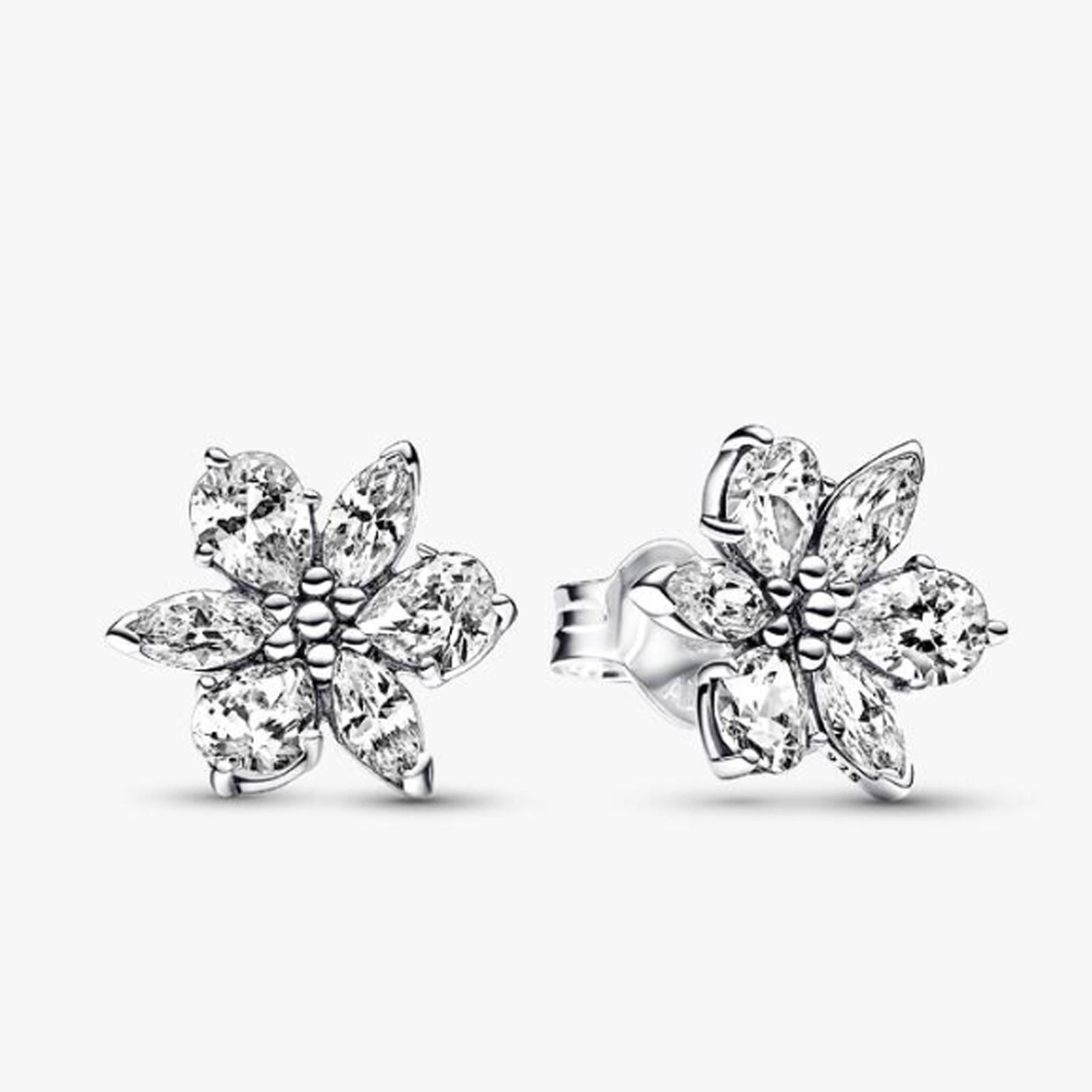 Herbarium cluster sterling silver stud earrings with clear cubic zirconia