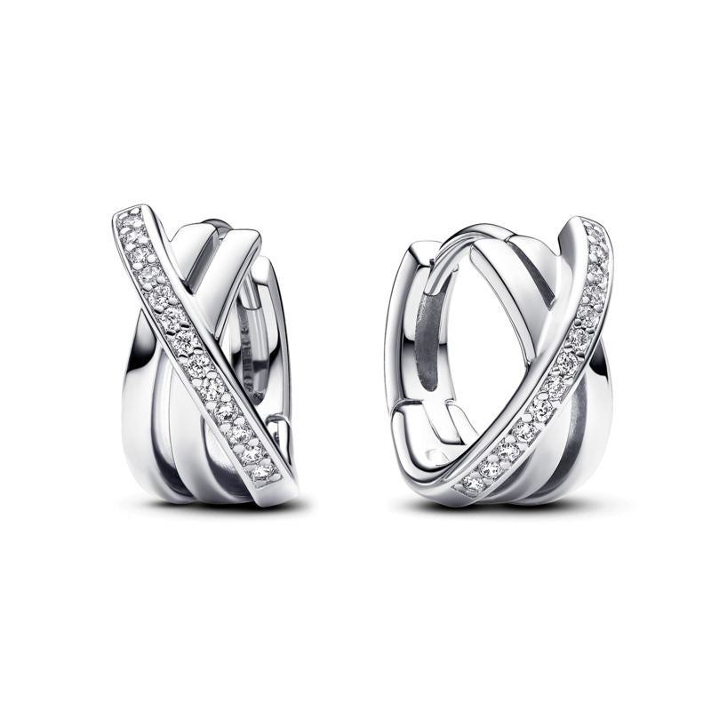 Crossover Pave Hoop Earrings