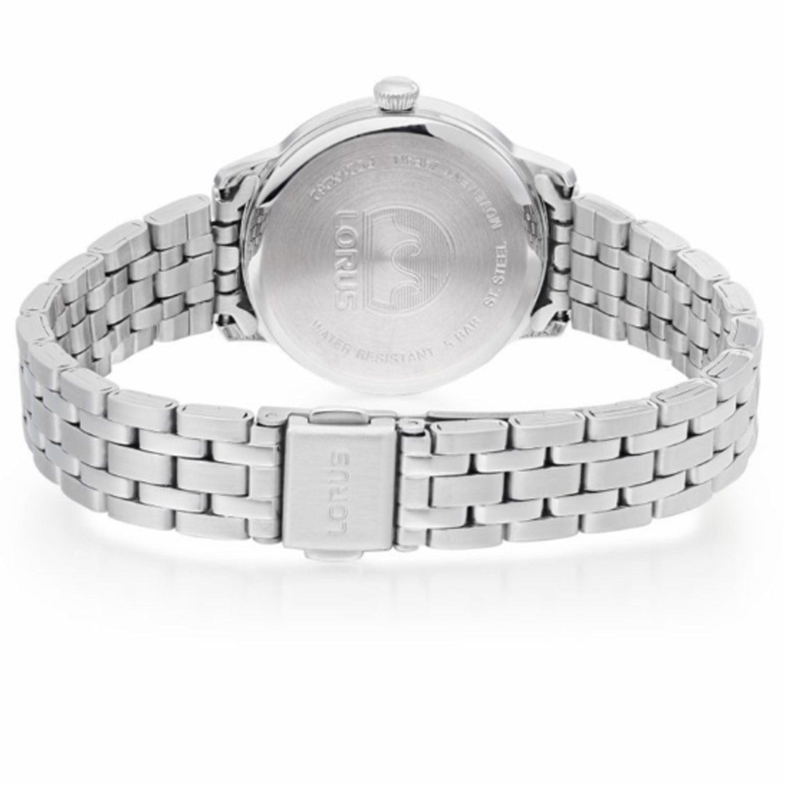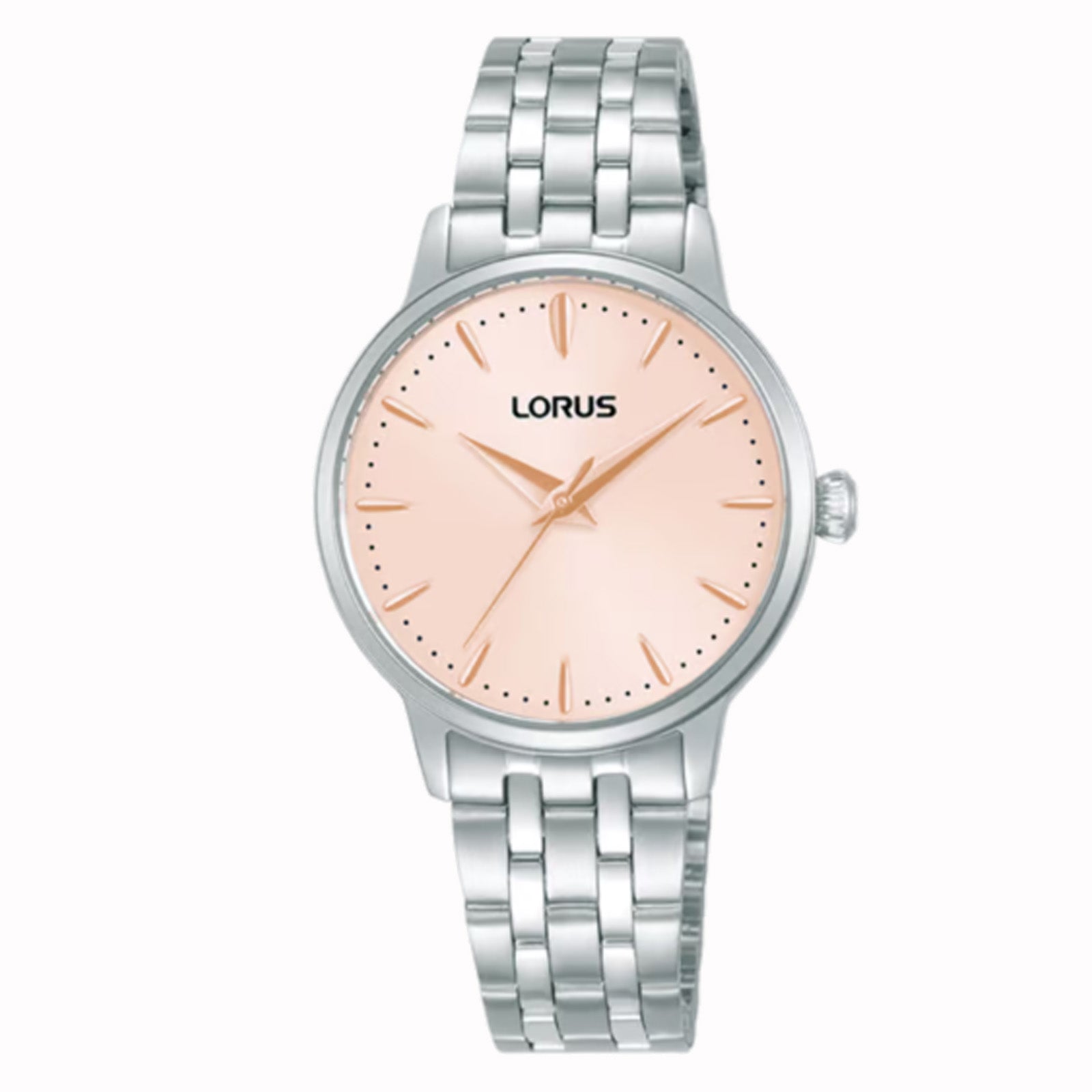 Lorus RG319XX9. Enjoy minimalist elegance with this watch from the Lorus Women's Collection. The pink dial is complemented by simple hour markers and a sleek stainless steel bracelet. With a water resistance of up to 50 metres, this versatile piece combines style and practicality. 30mm stainless steel case and bracelet with a mineral crystal glass and 50m water resistant.