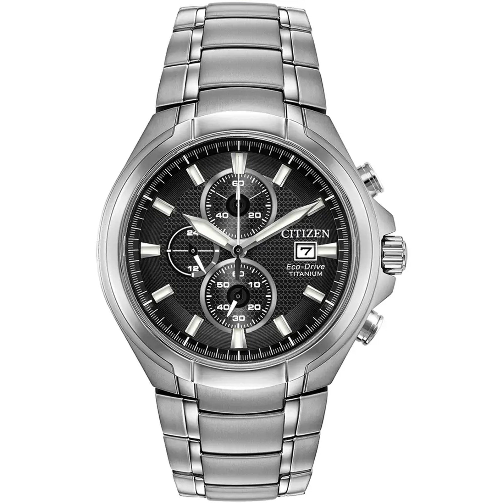 Citizen Super Titanium CA0700-86E. Intricate craftsmanship, stylish design and forward thinking technology characterise this watch from the Citizen Super Titanium Collection. With a classic look and Super Titanium construction which is more than five times harder than stainless steel as well as light and gentle on skin. Featuring sleek black dial with sapphire crystal glass, 100 metre water resistance and date display. Featuring a 1/5 second chronograph and Eco-Drive technology - powered by light, any light. Never needs a battery.