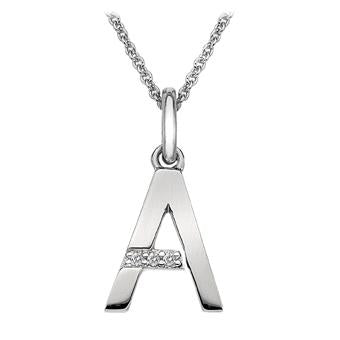 From our Love Letters Collection: Sterling silver letter 'A' Micro Pendant is adorned with three real 0.5 point diamonds. The letter sizing is 10mm x 7mm and a 40-45cm micro chain is included.