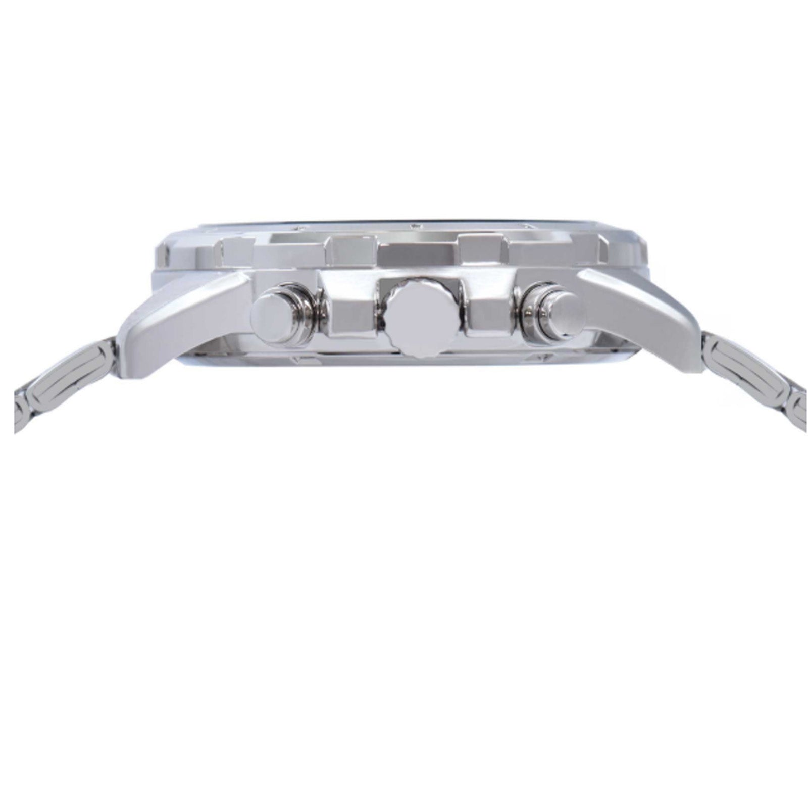 Lorus Solar Sports Chronograph RZ601AX9. Powered by light, this Lorus Solar Chronograph watch remains charged and ready to accompany you on every adventure. Its sleek, stainless steel design is complemented by a captivating black dial, offering a sophisticated contrast that catches the eye. Water-resistant up to 100 metres, this watch matches functionality and durability with style, providing a reliable and visually striking accessory for the modern individual.