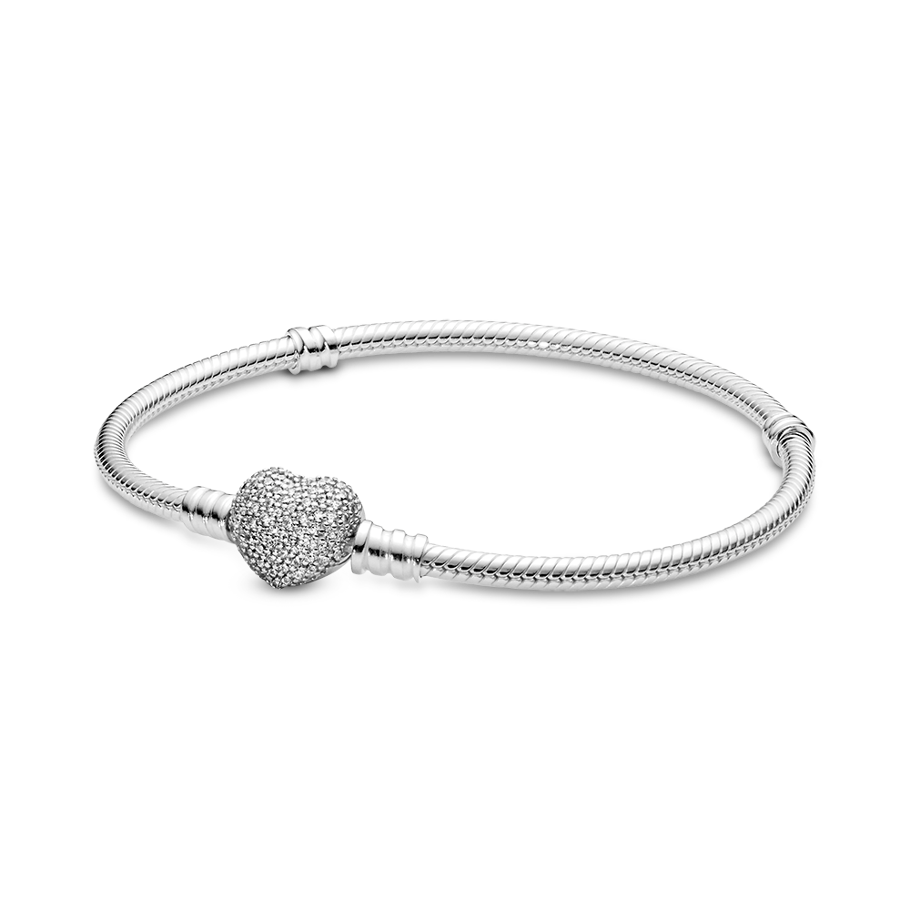 PANDORA MOMENTS SPARKLING HEART PAVÉ CLASP SNAKE CHAIN BRACELET