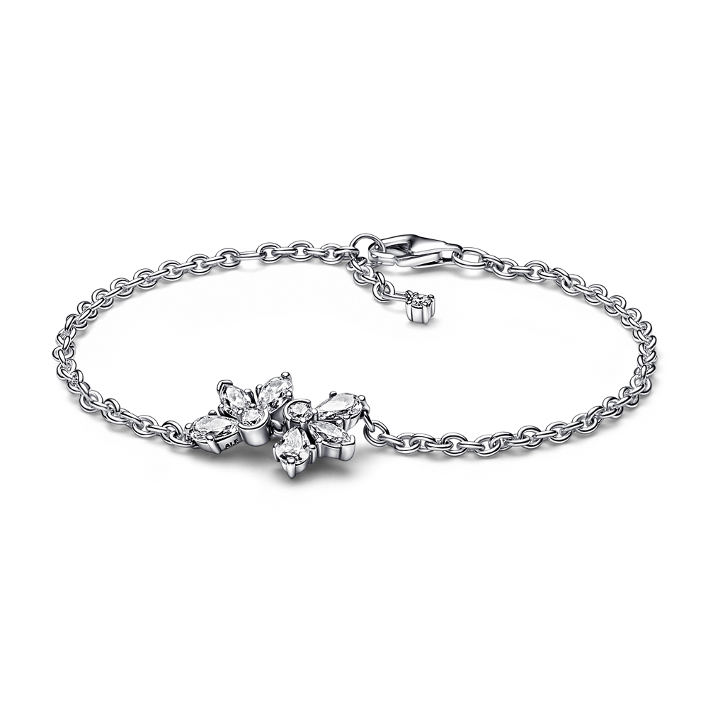 Herbarium cluster sterling silver bracelet with clear cubic zirconia