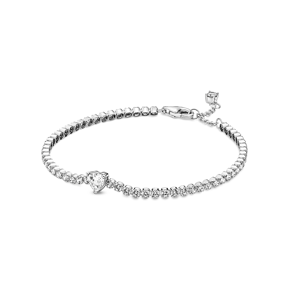 Heart sterling silver tennis bracelet with clear cubic zirconia