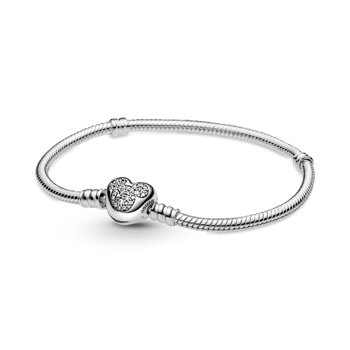 PANDORA MOMENTS SPARKLING HEART PAVÉ CLASP SNAKE CHAIN BRACELET