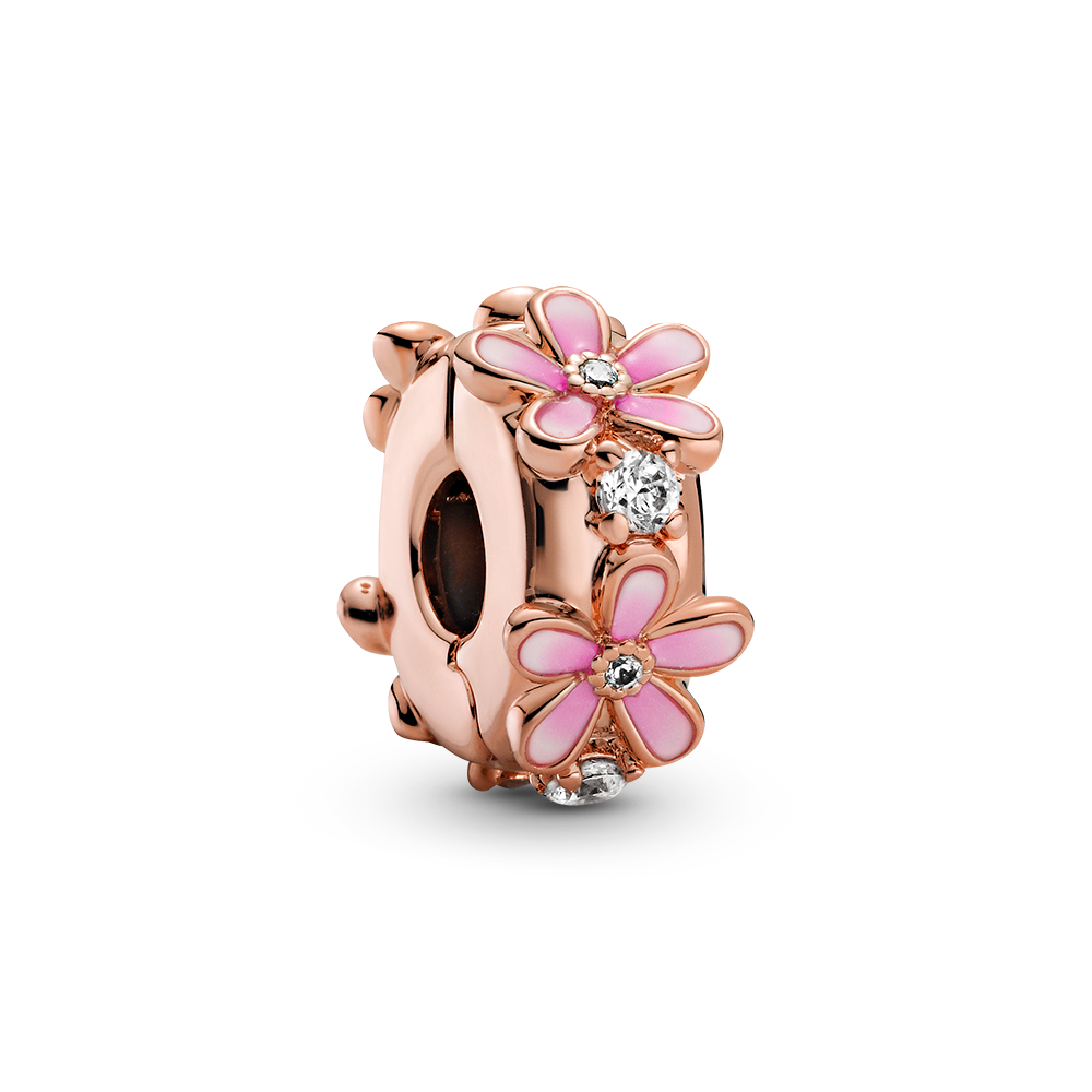 Daisy Pandora Rose clip with clear cubic zirconia and shaded pink enamel and silicone grip