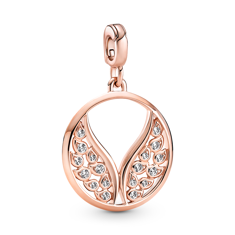 Angel wings 14k rose gold-plated medallion with clear cubic zirconia