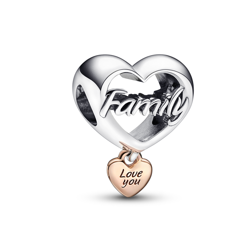 Family heart sterling silver and 14k rose gold-plated charm