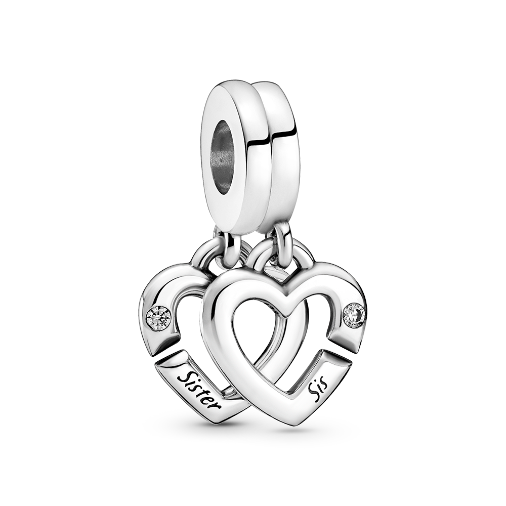 LINKED SISTER HEARTS SPLIT DANGLE CHARM