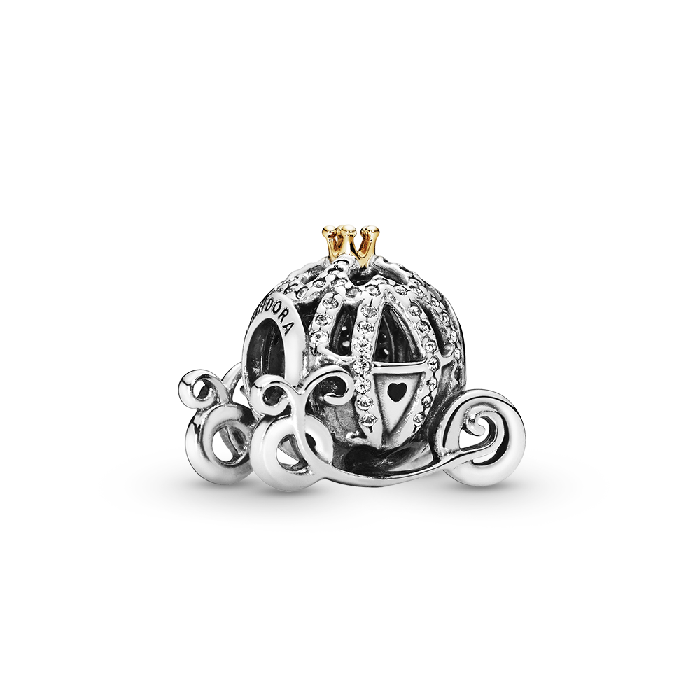 Disney Cinderella pumpkin coach silver charm with 14k and cubic zirconia