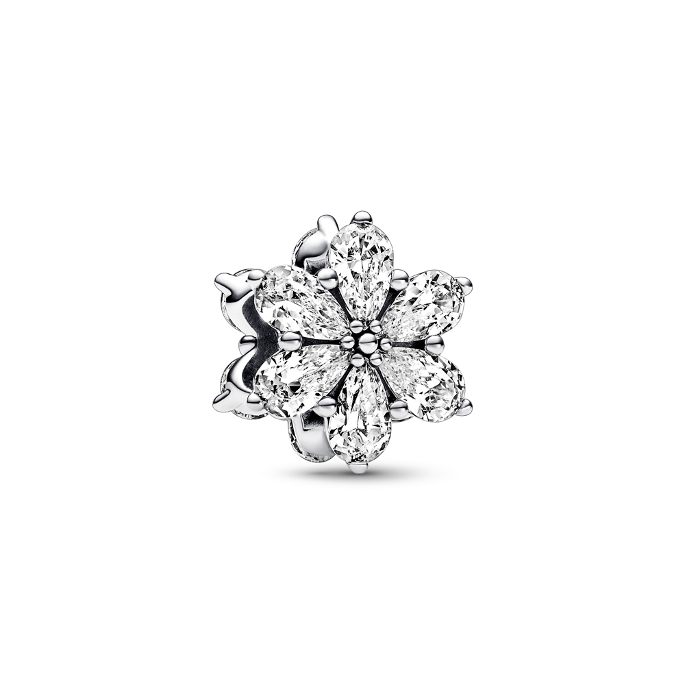 Herbarium cluster sterling silver charm with clear cubic zirconia