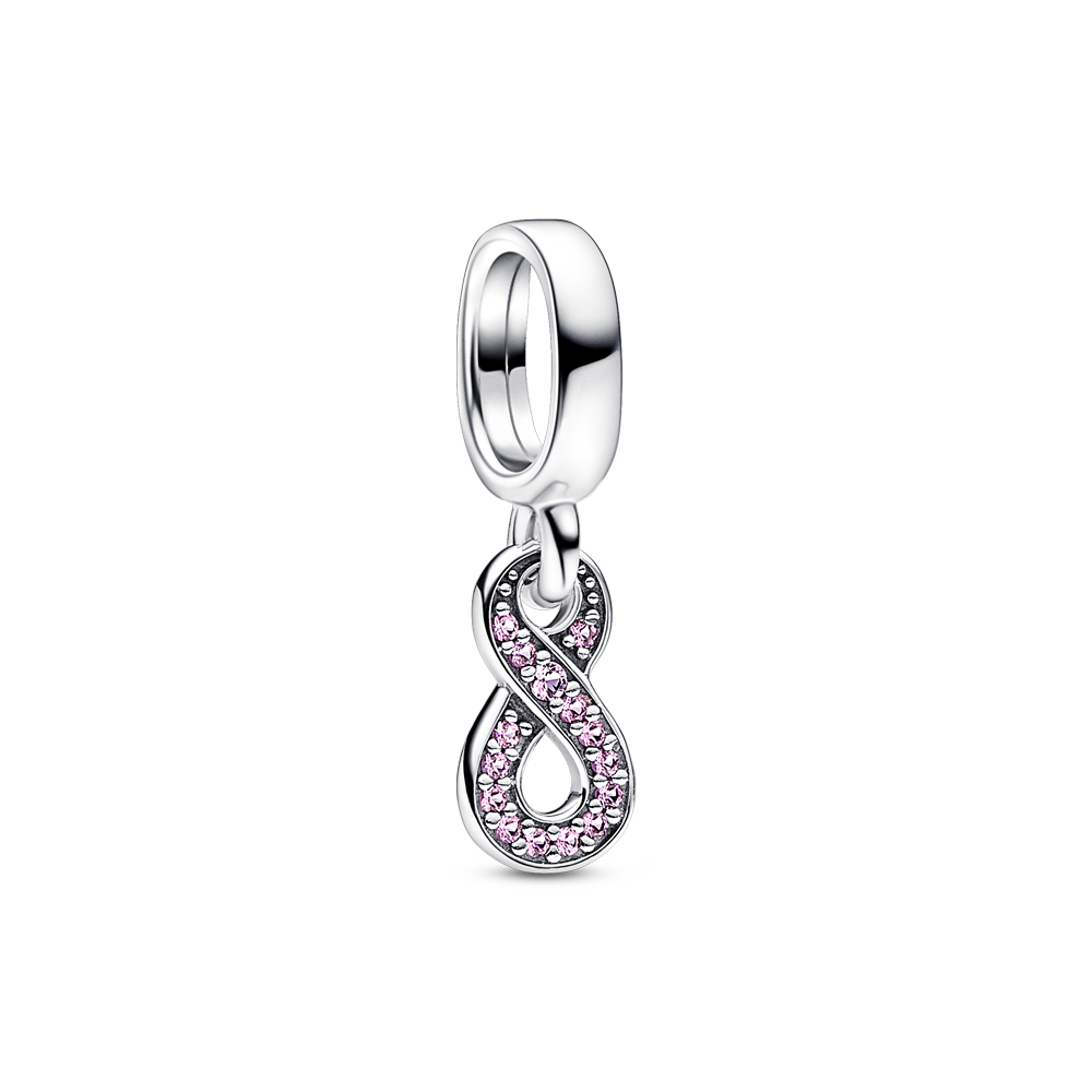 Infinity sterling silver dangle with cerise and phlox pink crystal
