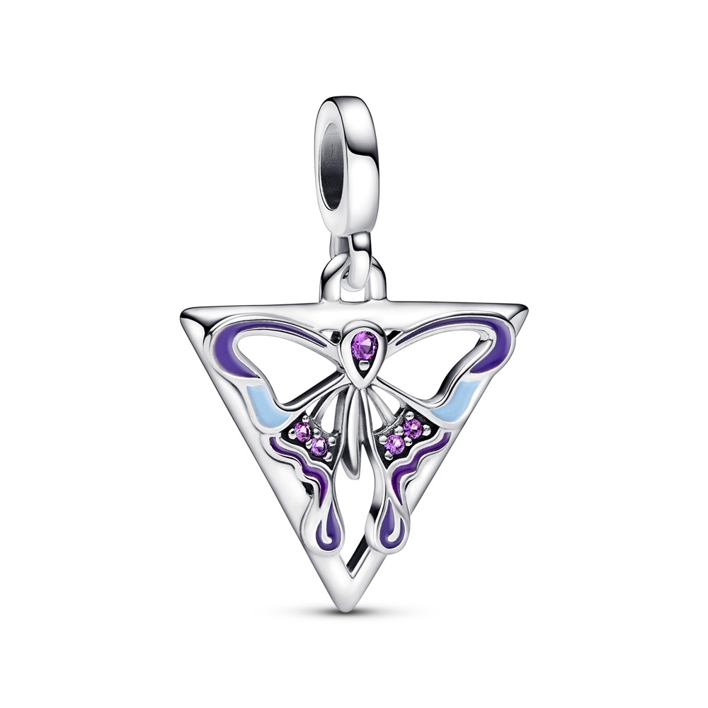 Butterfly sterling silver medallion with royal purple crystal, purple and blue enamel