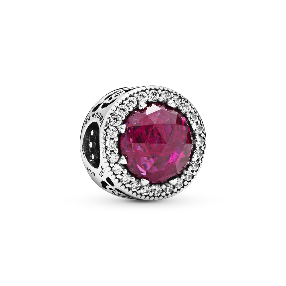 Disney Belle Enchanted rose silver charm with cerise crystal and clear cubic zirconia