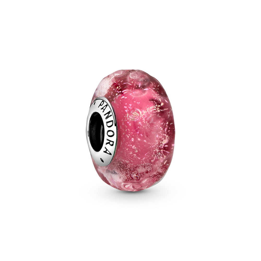 Wavy sterling silver charm with iridescent and pink Murano glass