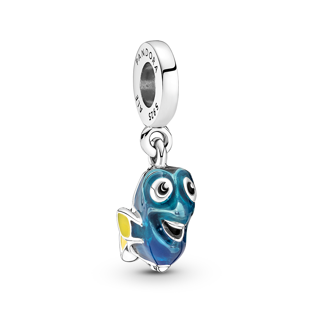 Disney Pixar Dory sterling silver dangle with transparent blue, black and yellow enamel