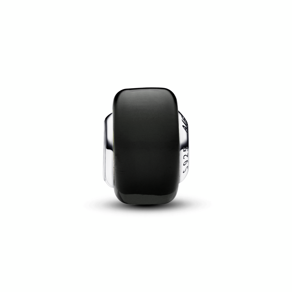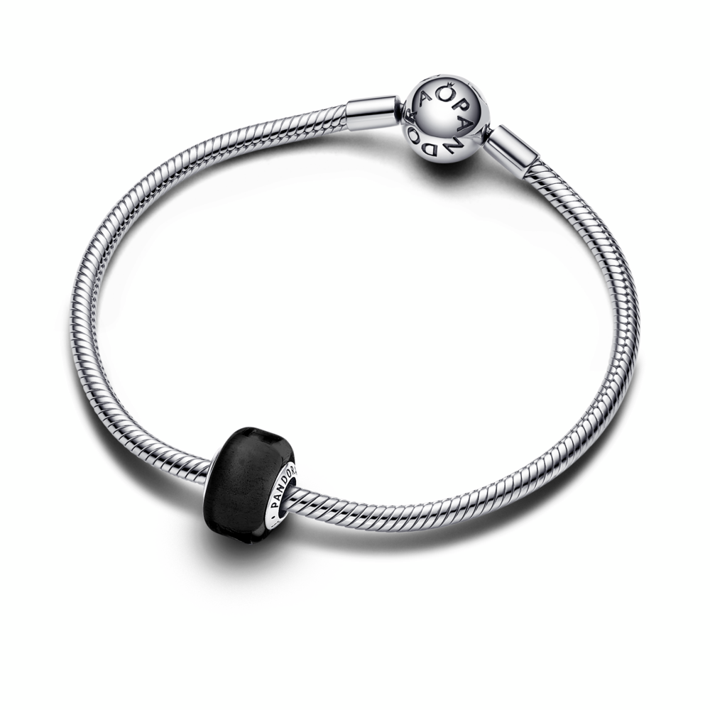 Add impact to your charm styling with our Black Mini Murano Glass Charm. This new charm design has a smaller size than our other Murano charms and a slightly squared shape, creating new ways to play with colour and dimension in your charm line-ups. The core is made from sterling silver and fits on any Pandora Moments charm holder. Pair it with your favourite sterling silver charms or get creative and mix with the same style in other colours.
