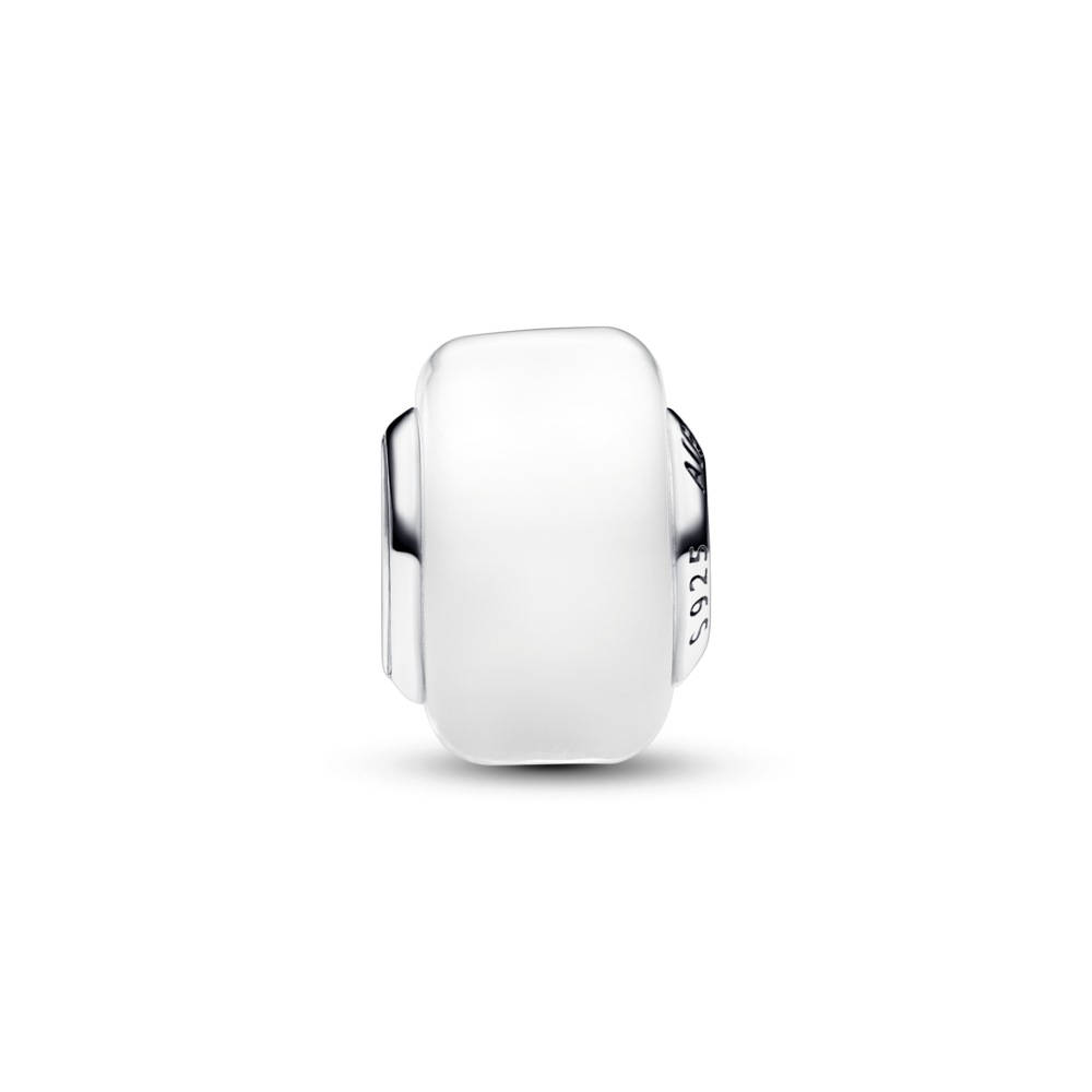 Add a splash of colour to your styling. This charm is crafted from milky white Murano glass and has a shining sterling silver core. Smaller and slightly squared in shape, create new ways to play with colour and dimension in your charm line-ups.