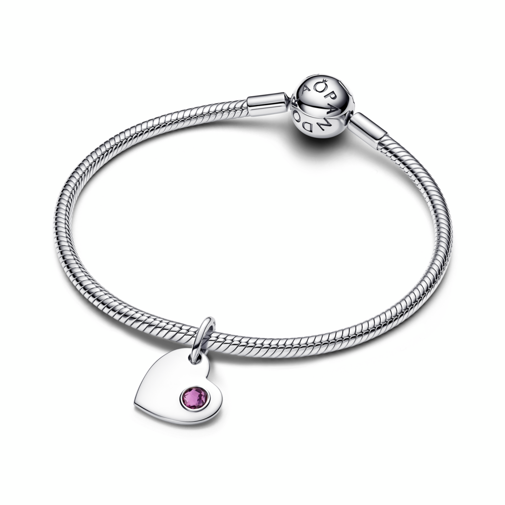 Wear your heart on your sleeve, literally. This sterling silver dangle charm offers a purple man-made crystal.