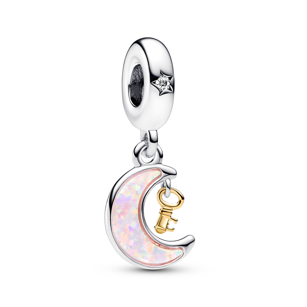 Two-tone Key & Moon Dangle Charm