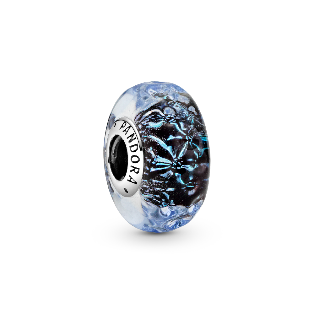 Wavy sterling silver charm with iridescent and dark blue Murano glass