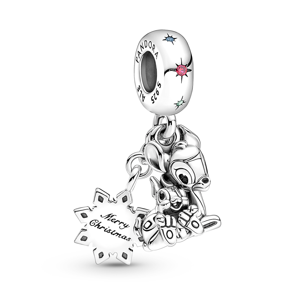 Disney Bambi and Thumper sterling silver dangle with red and fancy light blue cubic zirconia, royal green crystal and black enamel