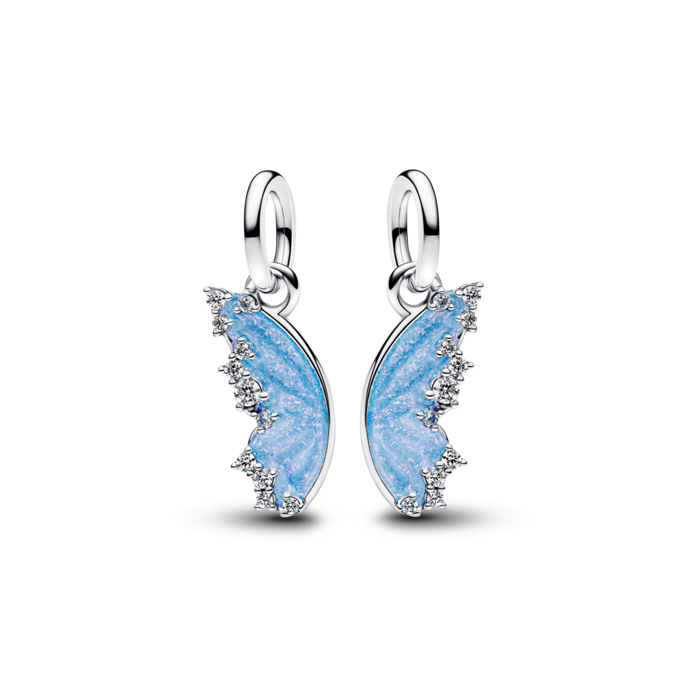 Made to share, designed to shine. This sterling silver splittable butterfly charm features sparkling cubic zirconia and shimmering blue enamel on the front, with the engraving 'TOGETHER ABOVE ALL' on the back of each.