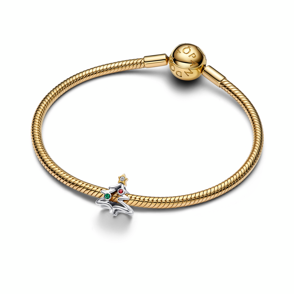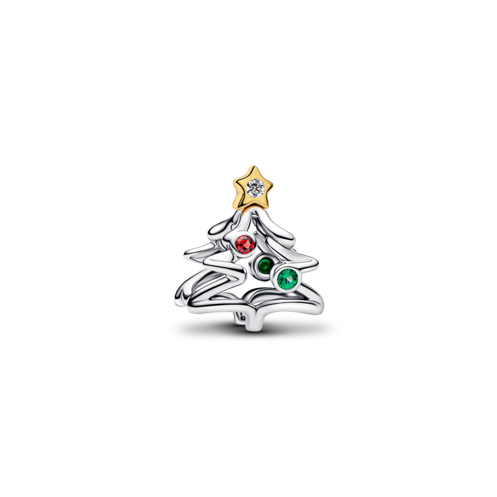A festive classic, reimagined. This openwork Christmas Tree Charm combines sterling silver and 14k gold plating with vibrant red and green man-made crystals and a star topper. Designed to brighten up your holiday look.