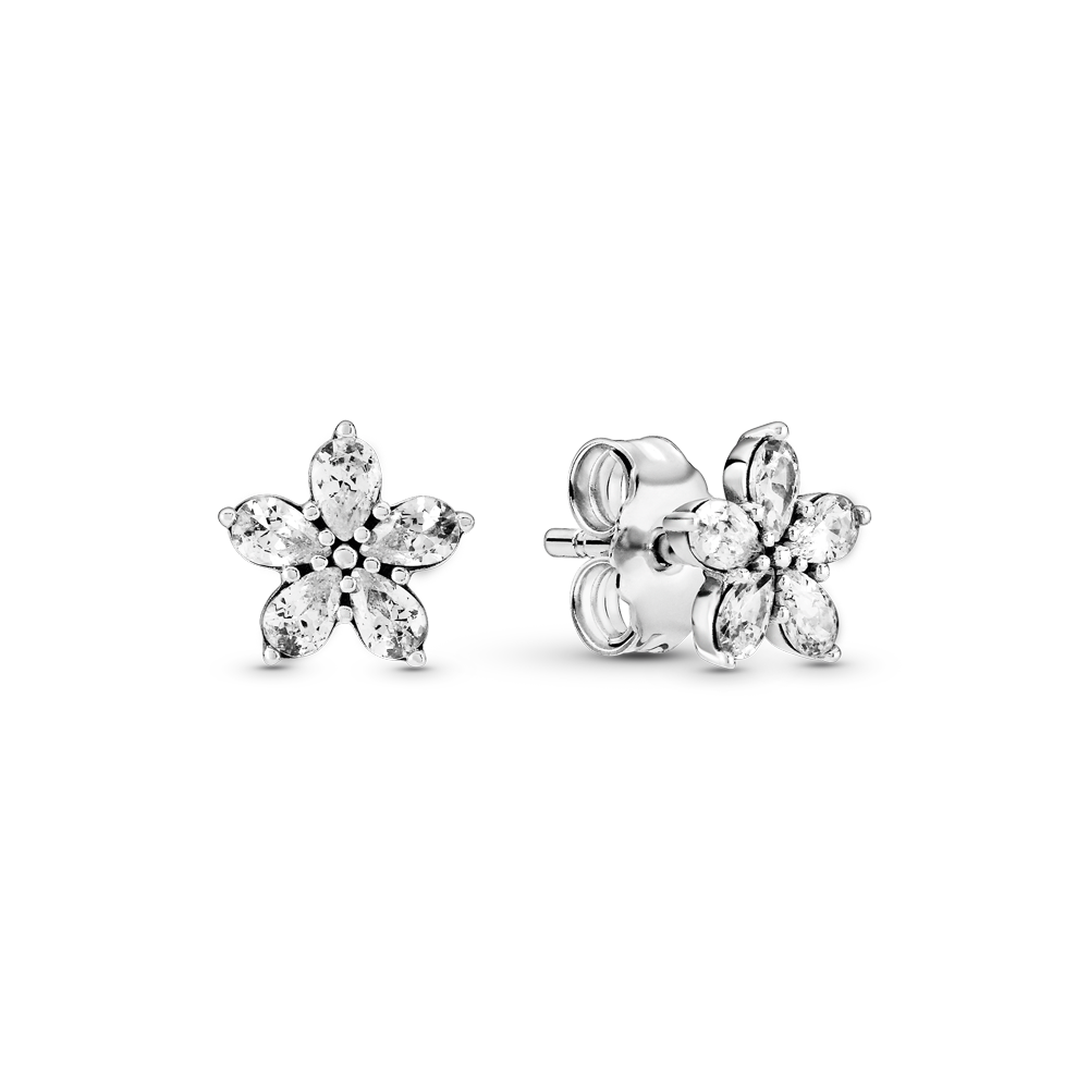 Snowflake sterling silver stud earrings with clear cubic zirconia