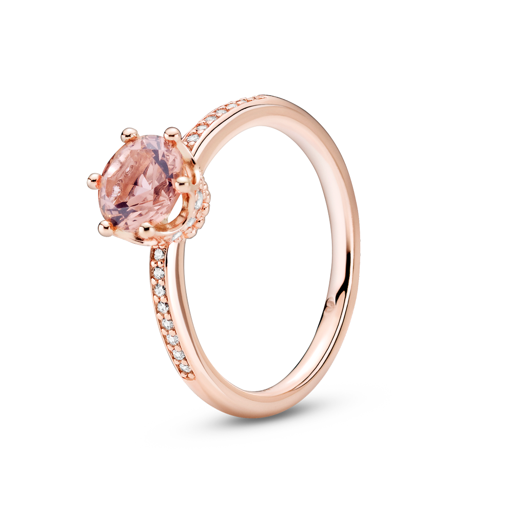 Crown Pandora Rose ring with blush pink crystal and clear cubic zirconia