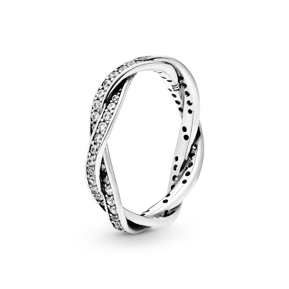 Braided pave silver ring with cubic zirconia