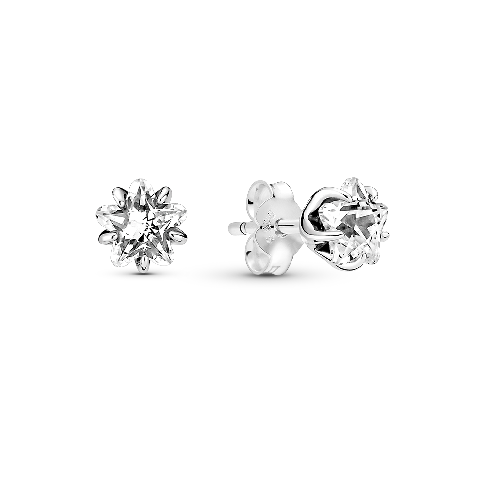 Star sterling silver stud earrings with clear cubic zirconia