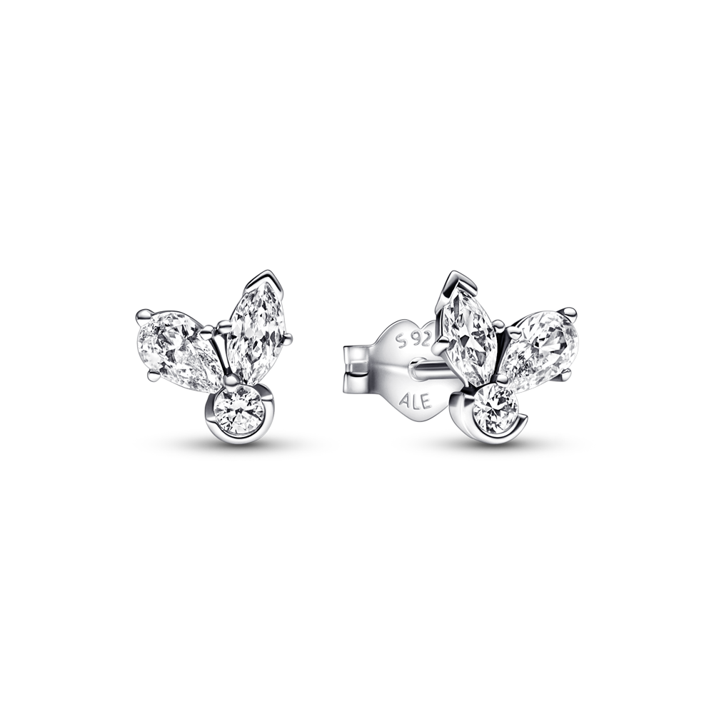 Herbarium cluster sterling silver stud earrings with clear cubic zirconia