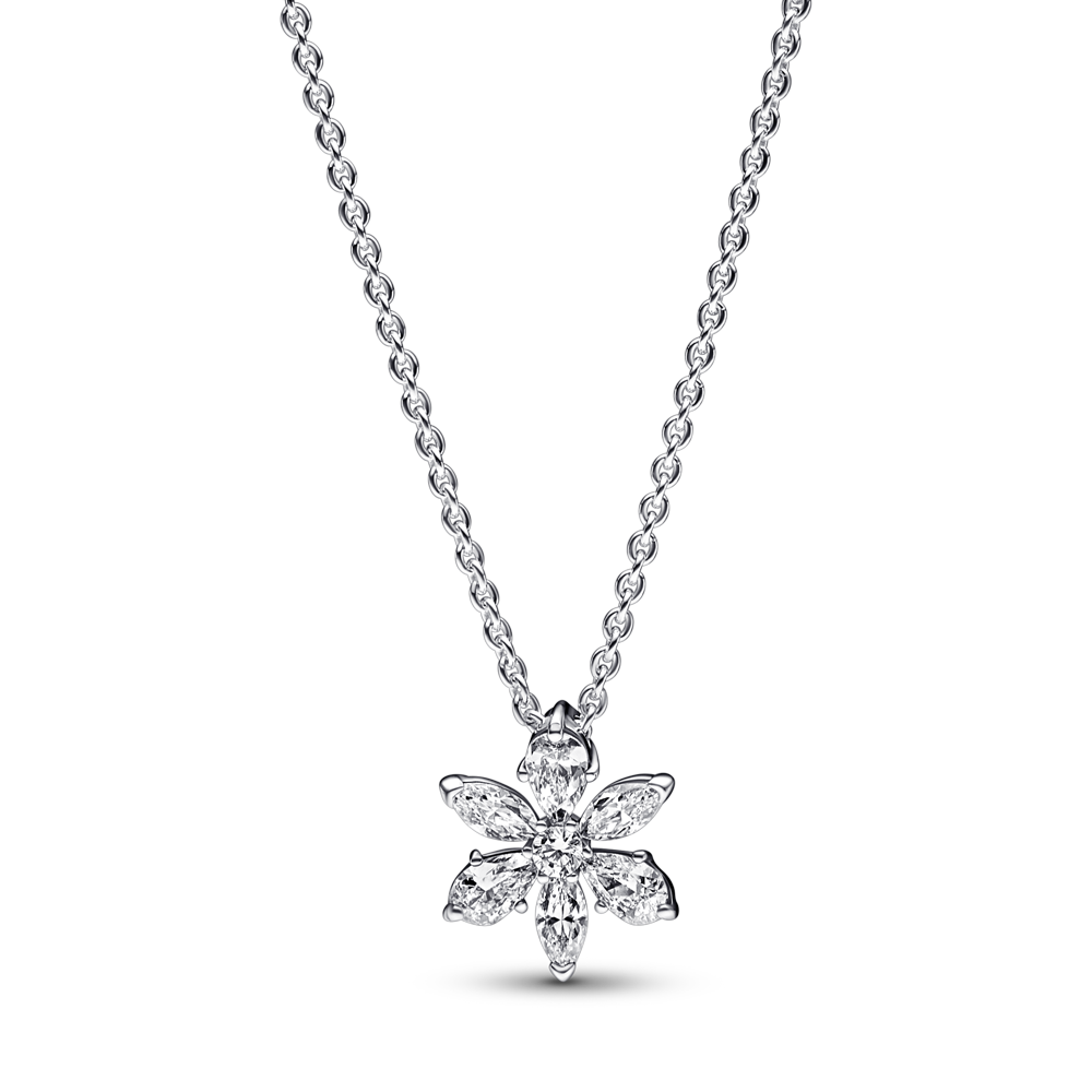 Herbarium cluster sterling silver collier with clear cubic zirconia