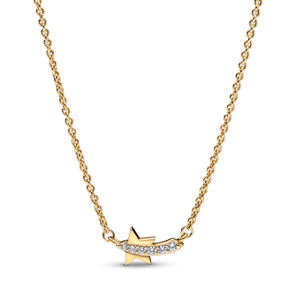 Shooting star 14k gold-plated collier with clear cubic zirconia