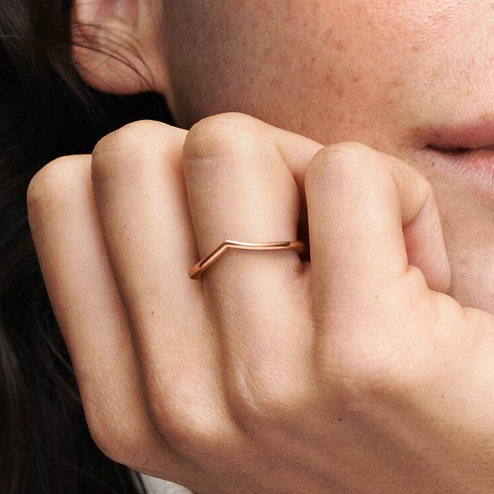 POLISHED WISHBONE ROSE RING - Size 58