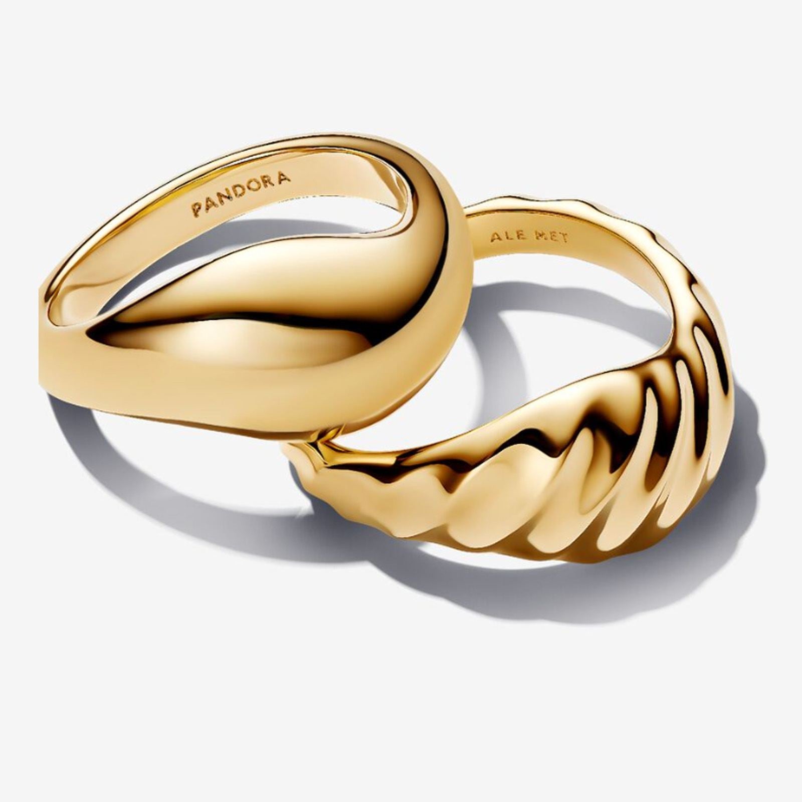 Gold Rippled Stacking Rings - Size 58. Experience the freedom to express yourself with these stackable rings, designed to fit seamlessly together in a celebration of imperfection and individuality.||? Gold Rippled Stacking Rings, Size 58.|? From the collection Pandora Essence.|? Genuine Pandora Stacking Rings.|? Handcrafted by artisans using their unique 14kt gold metal blend.|? Showcases a pair of organically shaped bands.|? Features a design of both imperfection and individuality.|? The ring size is UK: Q+ / EU: 58.|||