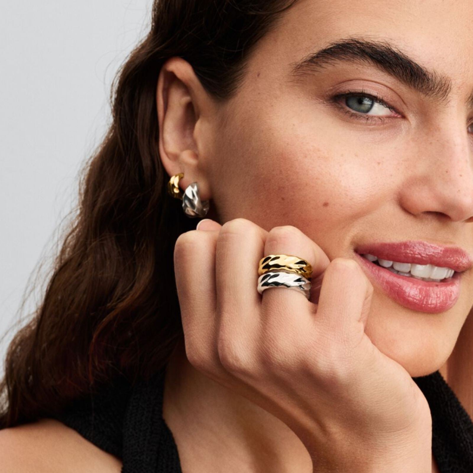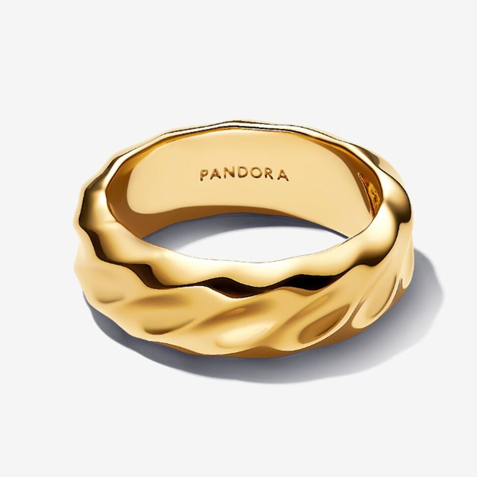 Rippled Wide Band Ring - Size 58. Celebrate individuality with a ring hat dares to be different. Its unique rippled design pattern is inspired by the beauty of imperfection, symbolizing the freedom to express yourself authentically.|? Gold Rippled Stacking Rings, Size 58.|? From the collection Pandora Essence.|? Genuine Pandora Stacking Rings.|? Handcrafted by artisans using their unique 14kt gold metal blend.|? Showcases a pair of organically shaped bands.|? Features a design of both imperfection and individuality.|? The ring size is UK: Q+ / EU: 58.|