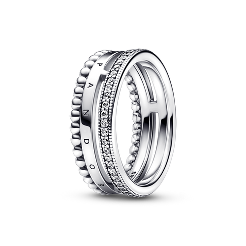 PANDORA SIGNATURE LOGO PAVÉ & BEADS RING