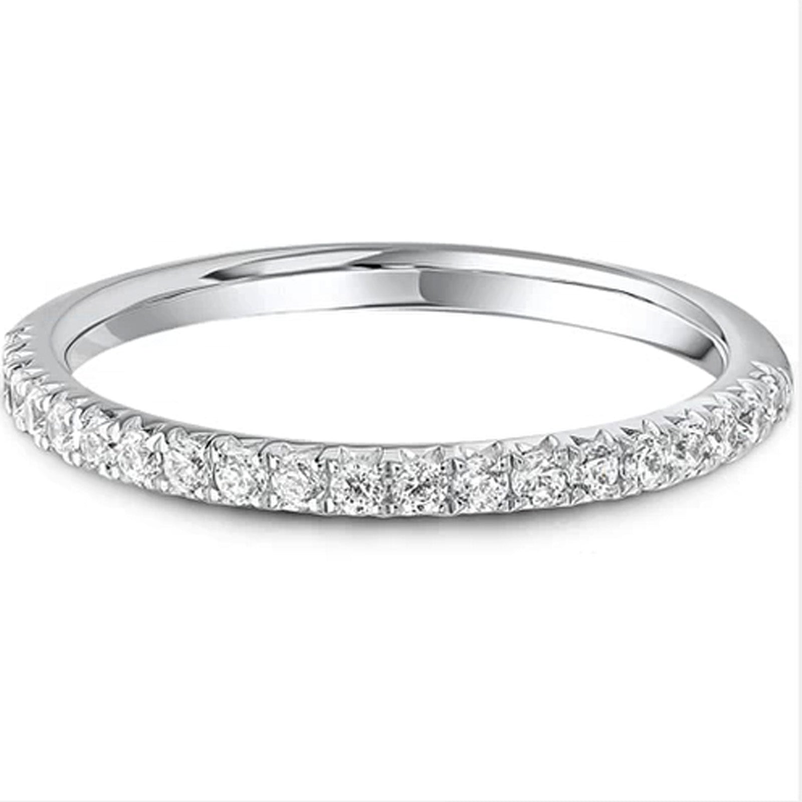 9ct white gold half eternity/wedding ring French pave set with 0.25ct G+ SI brilliant cut diamonds. Band Width: 1.90mm. Diamond Coverage: 50%. Size O.