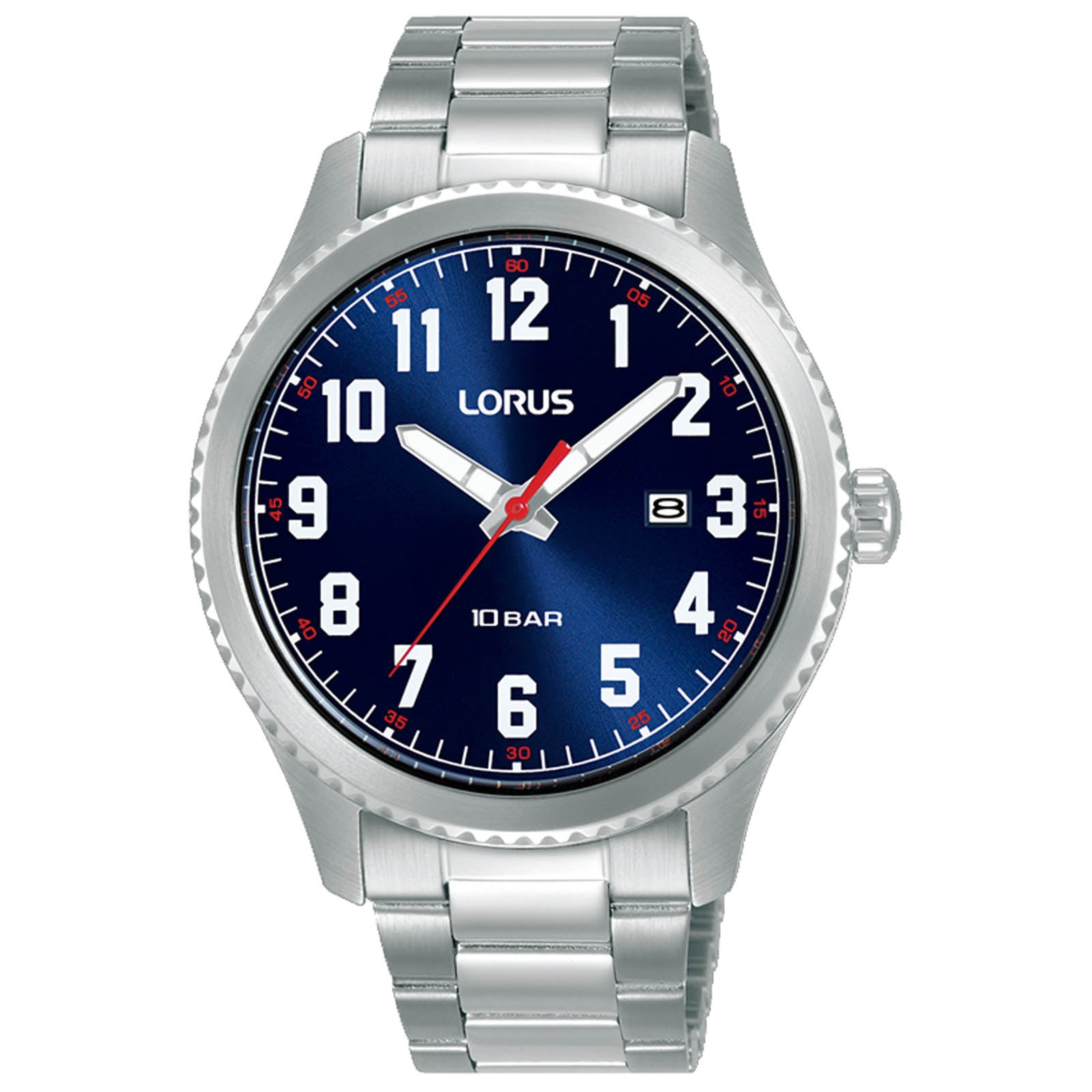 A watch for all occasions, the attractive dark blue sunray dial of this watch is enhanced by semi-luminous hands, clear Arabic numerals, a date window and a striking red second hand, alongside a Stainless-steel bracelet. With water resistance up to 100 metres, this watch combines style and functionality, making it an ideal accessory for both everyday wear and special occasions. Lorus: attractively affordable watches, made to last from Seiko Watch Corporation. Specifications Movement Accuracy: +/- 30 seconds a month Calibre: PC32 Movement Type: Quartz Exterior Dial Colour: Blue Case Material: Stainless steel Strap/Bracelet: Stainless steel Strap/Bracelet Width: 20mm Clasp/Buckle: Three-fold clasp with push button release Case Thickness: 10.1mm Case Diameter: 41mm Watch Length: 235mm Case Back: Screw case back Other Specifications Water Resistance:10 bar Crystal Type: Flat mineral crystal Watch Hands: Hour, Minute & second hands Luminous Hands/Indexes: Semi luminous hands Other Specifications: Date display Weight: 107g