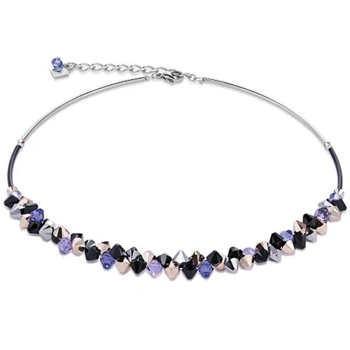 Coeur De Lion Glamorous Purple Black & Rose Gold Crystals Necklace