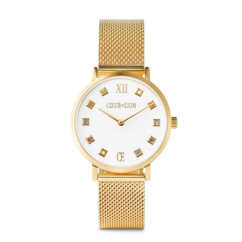 Coeur De Lion Round White Gold Plated Mesh Watch